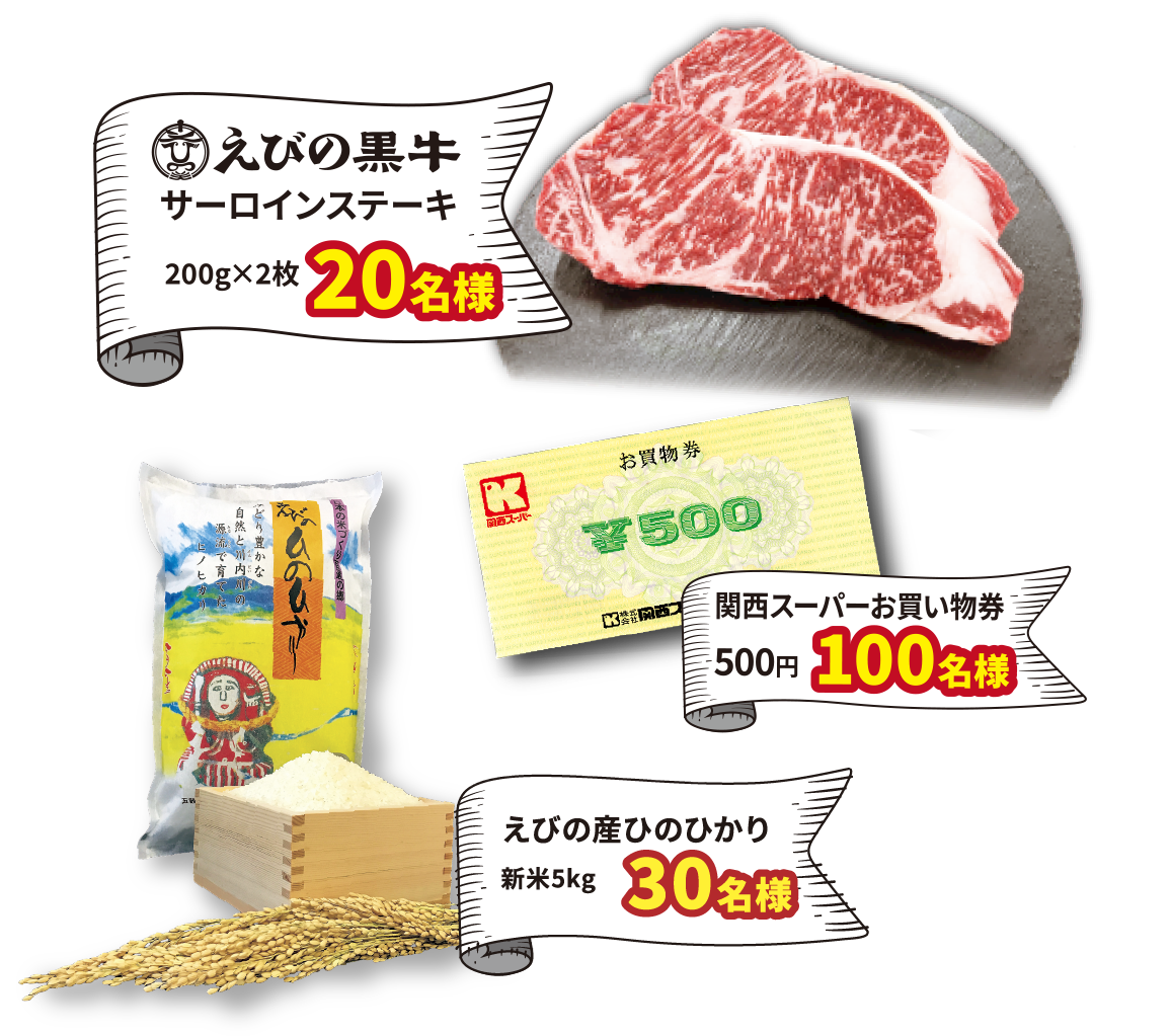 ※2025年10月20日(月)~10月26日(日)までのえびの産対象商品500円以上のレシートで応募できます。 ※当選者の発表は賞品の発送をもってかえさせていただきます。